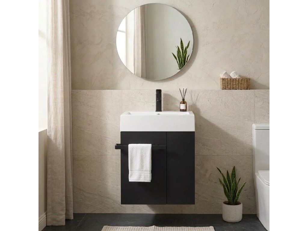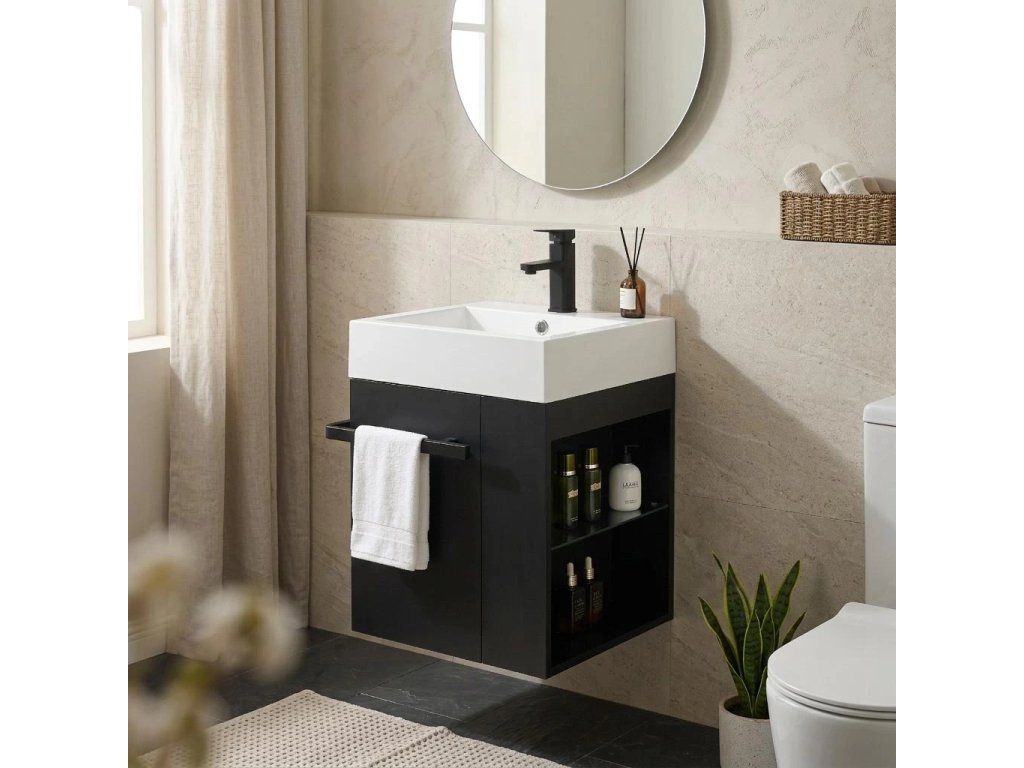 CERANO - Esme WC mosdószekrény - matt fekete + márvány mosdó - matt fehér - 45x45x63 cm