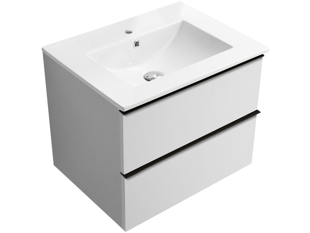 CERANO - Fürdőszobaszekrény mosdó alá Velora fogantyúval + Todo kerámia mosdó - matt fehér, fekete fogantyú - 69x53x46 cm