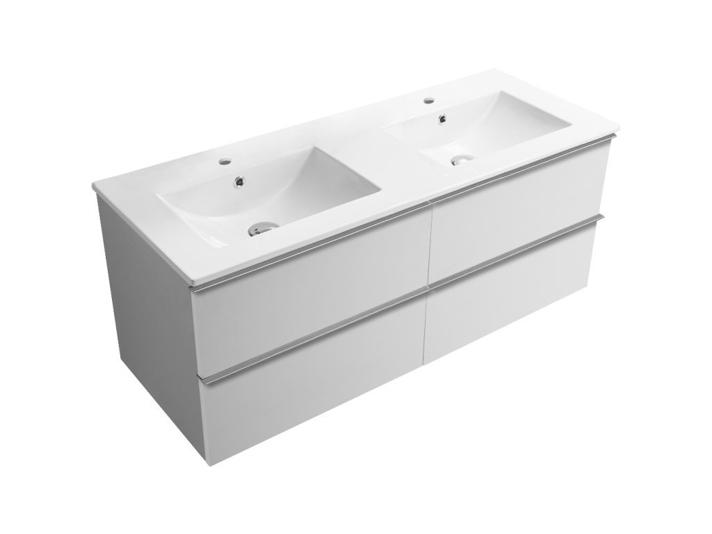 CERANO - Fürdőszobaszekrény mosdó alá Velora fogantyúval + Todo kerámia mosdó - matt fehér, króm fogantyú - 119x53x45,2 cm