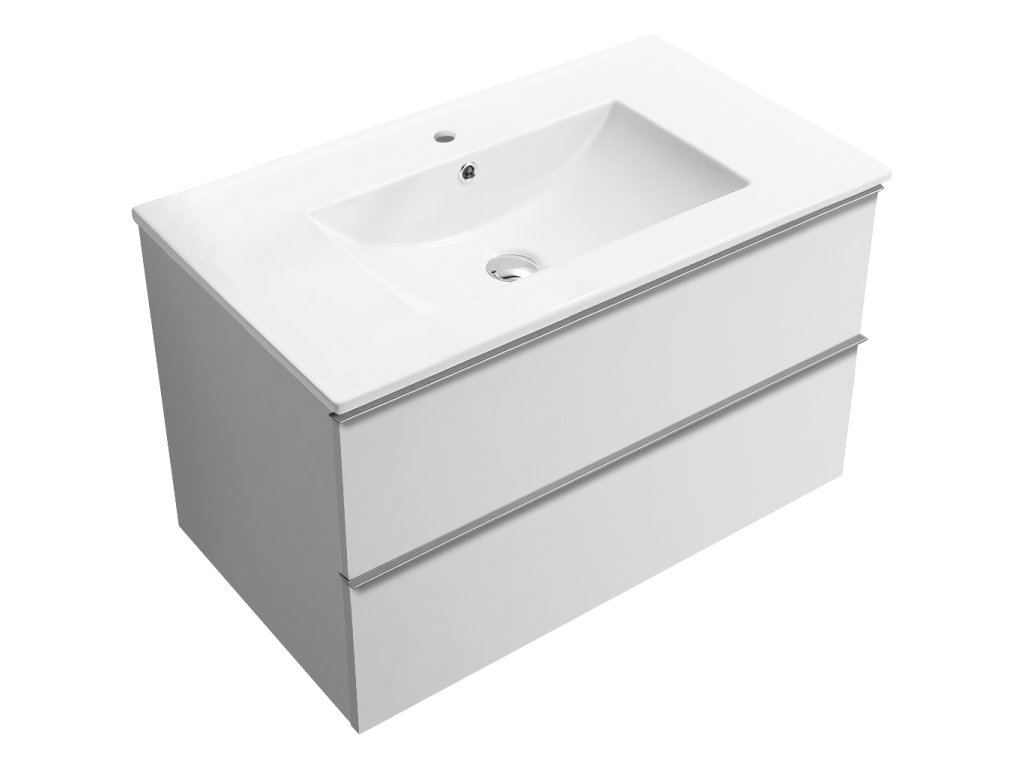 CERANO - Fürdőszobaszekrény mosdó alá Velora fogantyúval + Todo kerámia mosdó - matt fehér, króm fogantyú - 99x53x46 cm