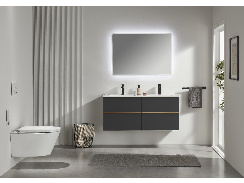 CERANO - Fürdőszobaszekrény mosdó alá Velora fogantyúval + Todo kerámia mosdó - matt fekete, arany fogantyú - 119x53x45,2 cm