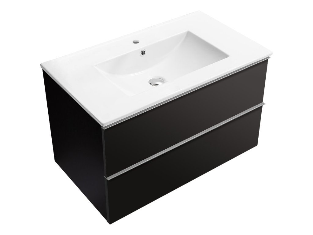 CERANO - Fürdőszobaszekrény mosdó alá Velora fogantyúval + Todo kerámia mosdó - matt fekete, króm fogantyú - 99x53x46 cm