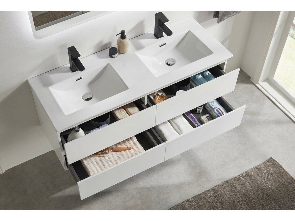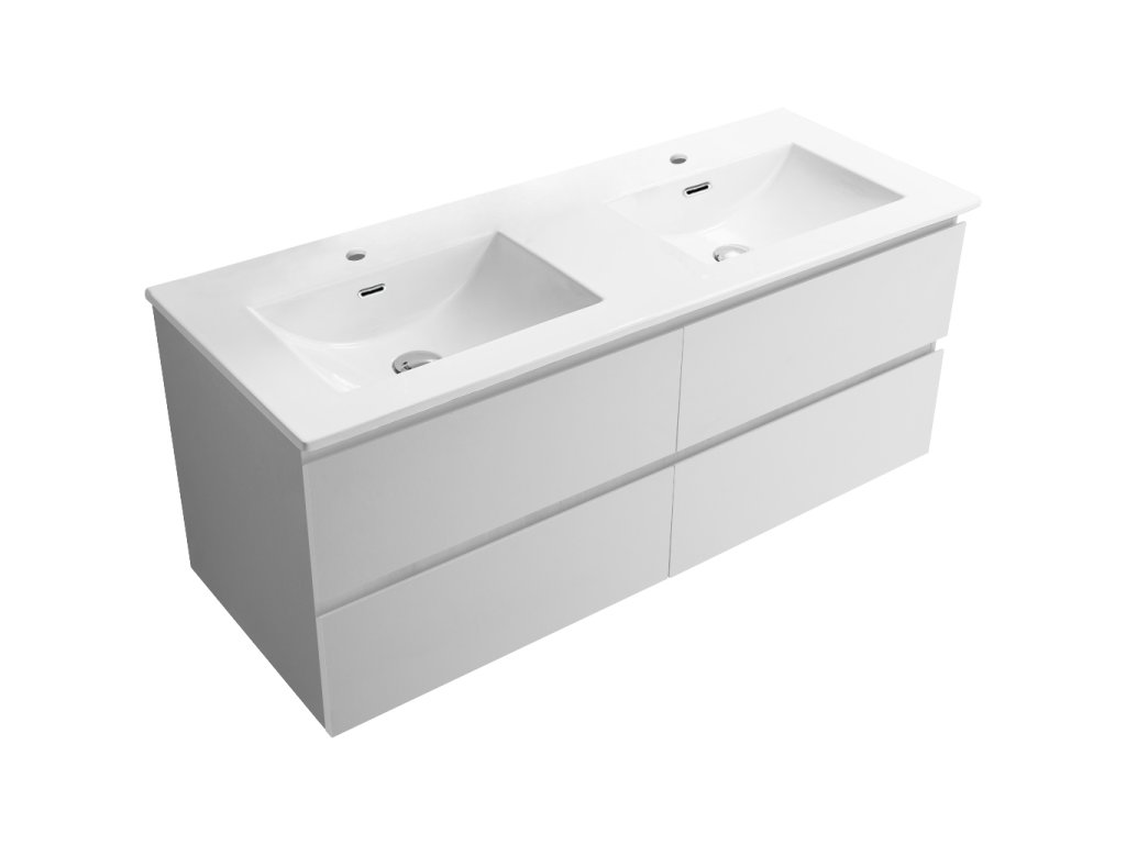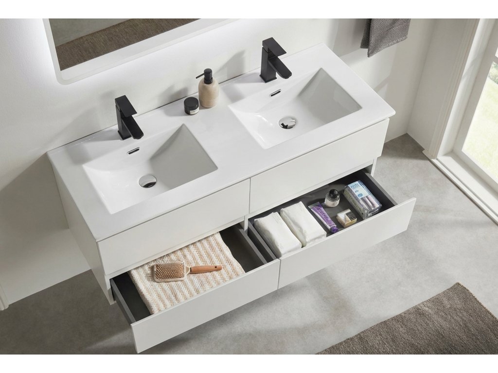 CERANO - Mosdó alatti fürdőszobaszekrény Carole + kerámia dupla mosdó Novo - matt fehér - 121x49,5x46,5 cm