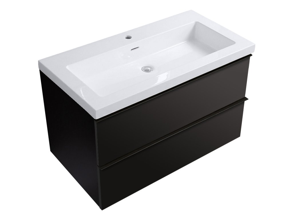 CERANO - Velora fürdőszobaszekrény - fényes fehér - fekete fogantyú + márvány mosdó - matt fekete - 79x53x46 cm