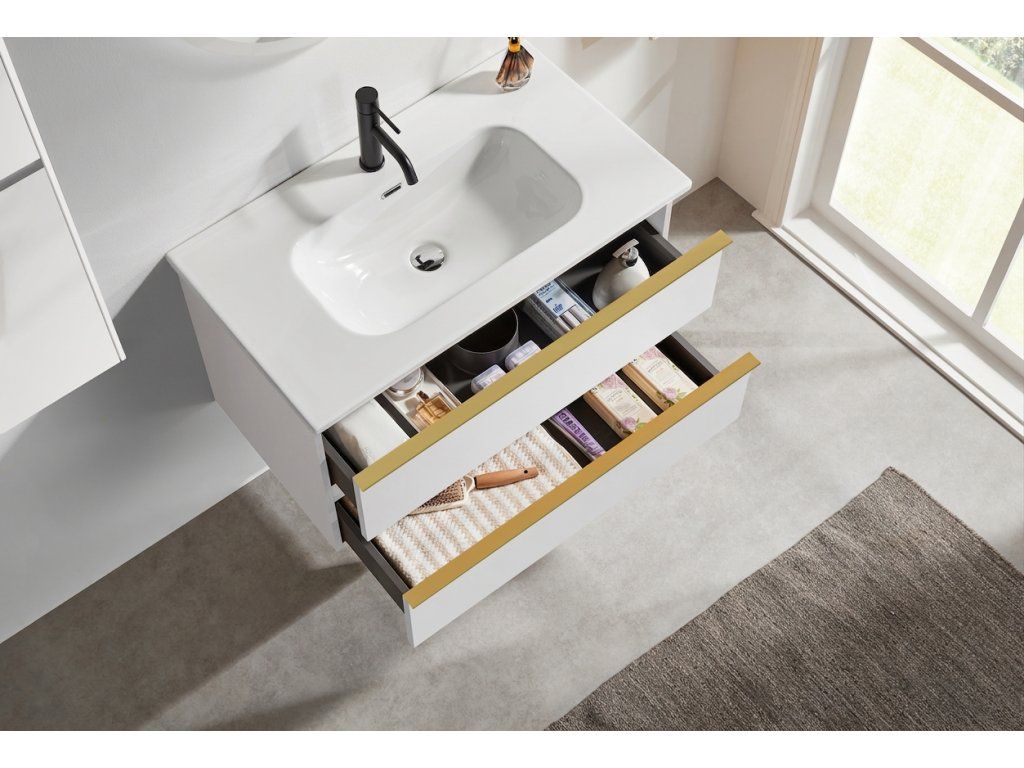 CERANO - Velora fürdőszobaszekrény - matt fehér, arany fogantyú + Novo kerámia mosdó - fényes fehér - 61x54,5x46,5 cm