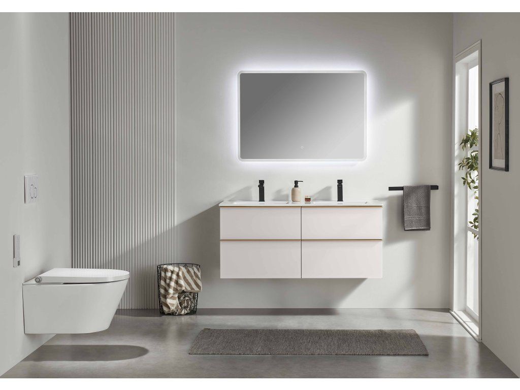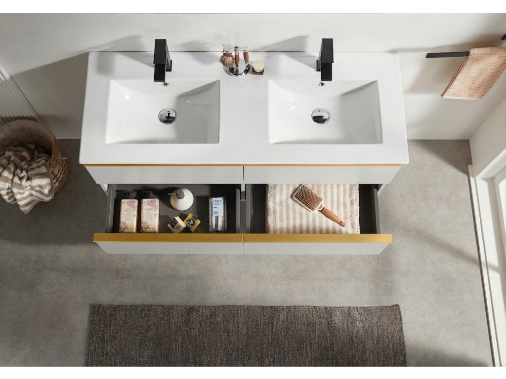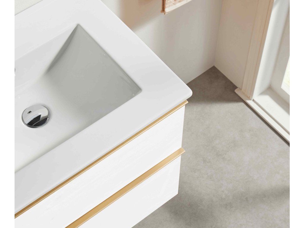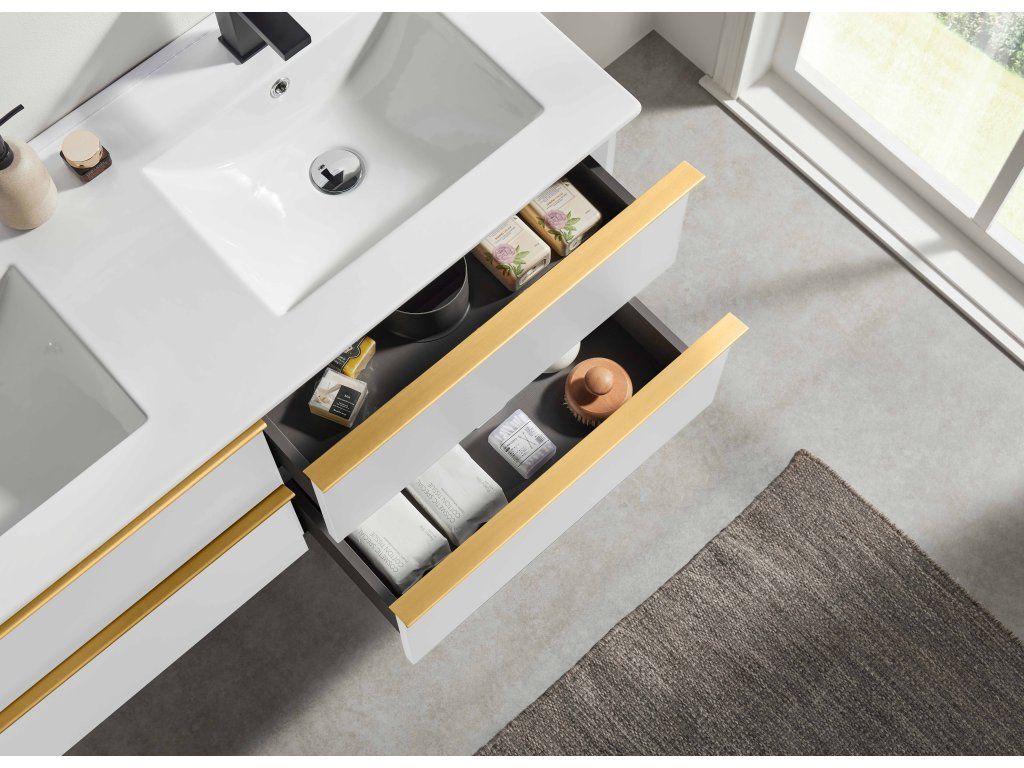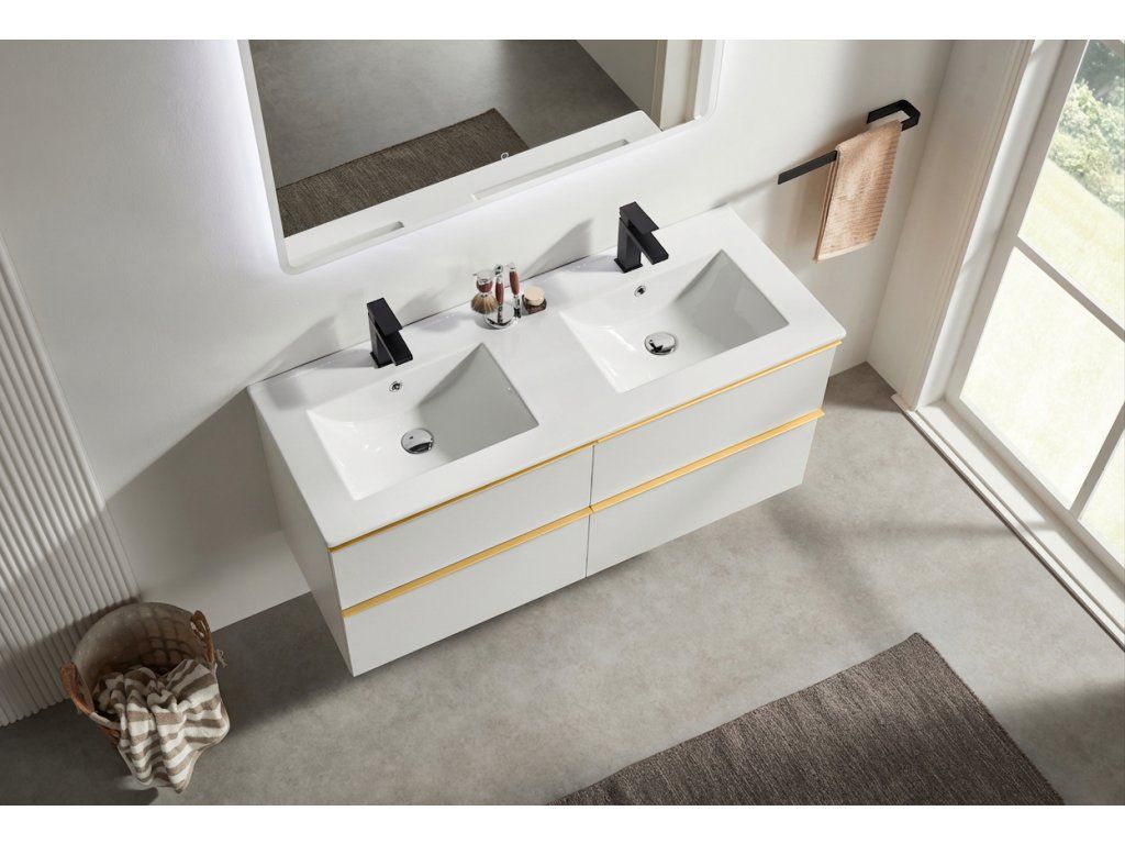 CERANO - Velora fürdőszobaszekrény - matt fehér, arany fogantyú + Todo kerámia mosdó - 121x55x46,5 cm