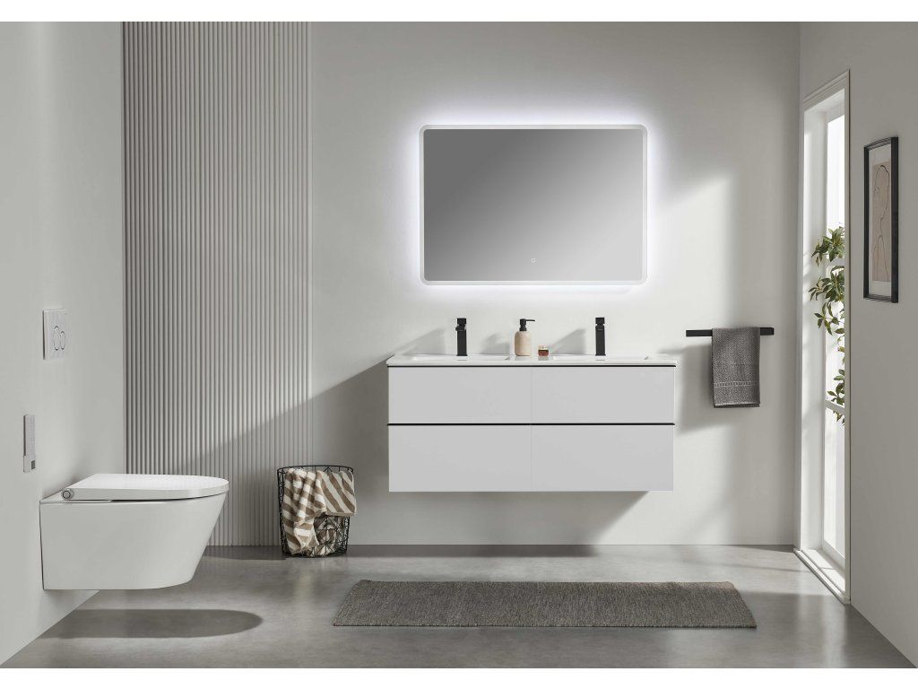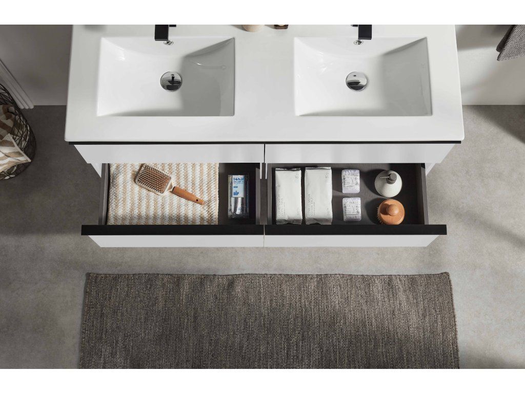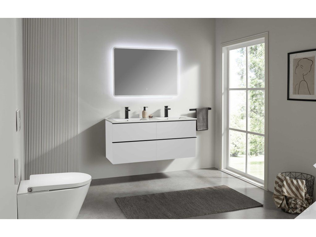 CERANO - Velora fürdőszobaszekrény - matt fehér, fekete fogantyúval + Todo kerámia mosdó - 121x55x46,5 cm