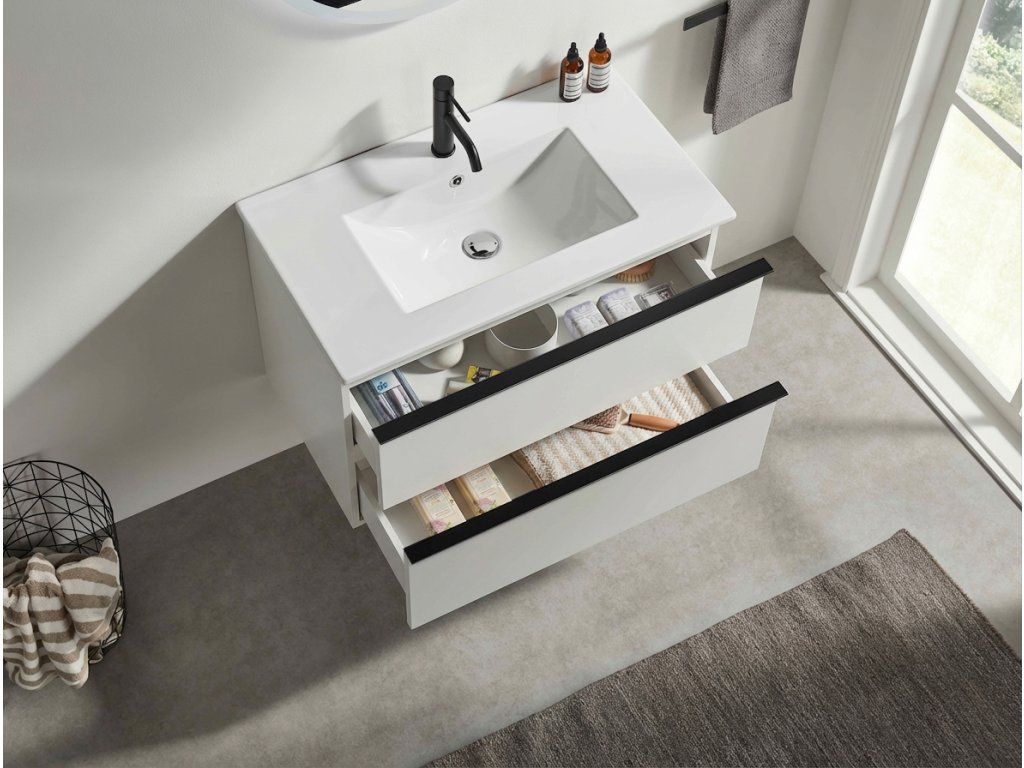 CERANO - Velora fürdőszobaszekrény - matt fehér, fekete fogantyúval + Todo kerámia mosdó - 71x55x46,5 cm