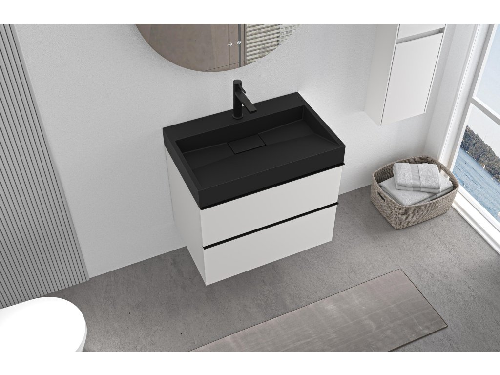 CERANO - Velora fürdőszobaszekrény - matt fehér - fekete fogantyú + csaplyukkal ellátott mosdó öntött márványból Vita - fekete - 70x53x46 cm