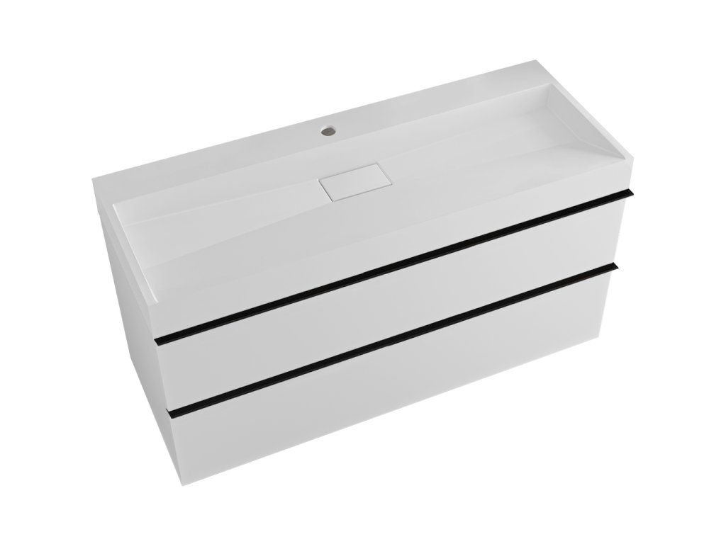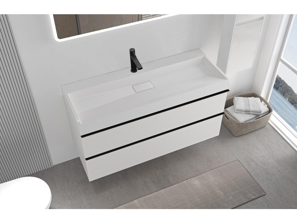 CERANO - Velora fürdőszobaszekrény - matt fehér - fekete fogantyú + csaplyukkal ellátott mosdó öntött márványból Vita - fényes fehér - 100x53x46 cm