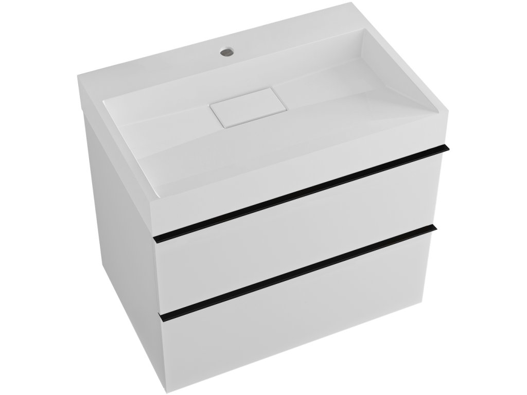 CERANO - Velora fürdőszobaszekrény - matt fehér - fekete fogantyú + Vita öntött márványból készült mosdó csaplyukkal - fényes fehér - 70x53x46 cm