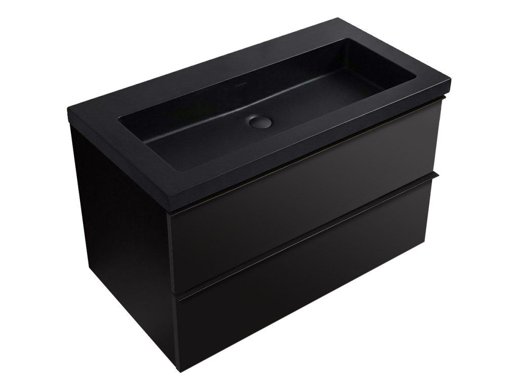 CERANO - Velora fürdőszobaszekrény - matt fekete, fekete fogantyú + Ovo márvány mosdó - matt fekete - 80,5x58x46,5 cm
