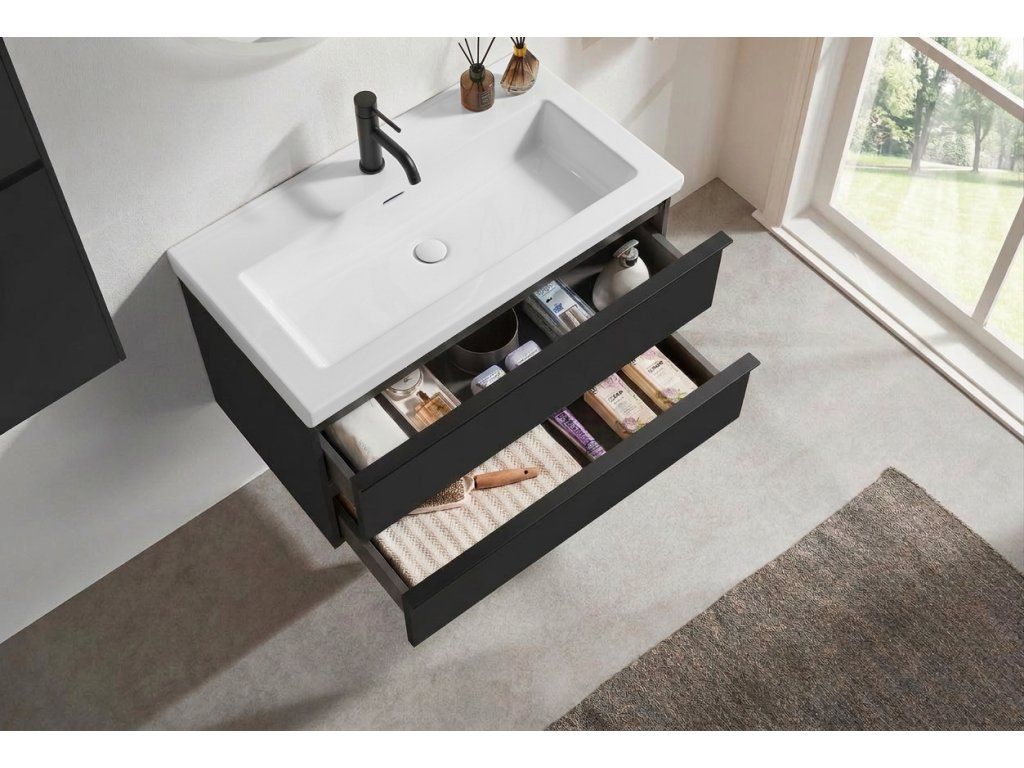 CERANO - Velora fürdőszobaszekrény - matt fekete, fekete fogantyú + Ovo világítású márvány mosdó - fényes fehér - 100,5x58x46,5 cm