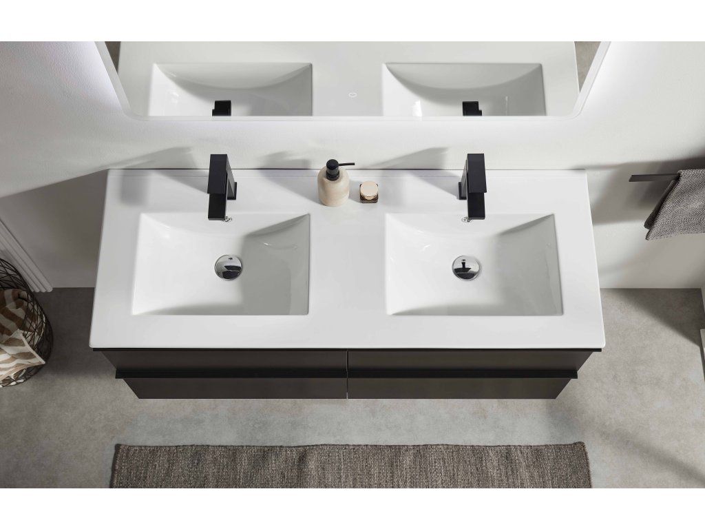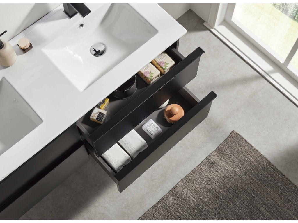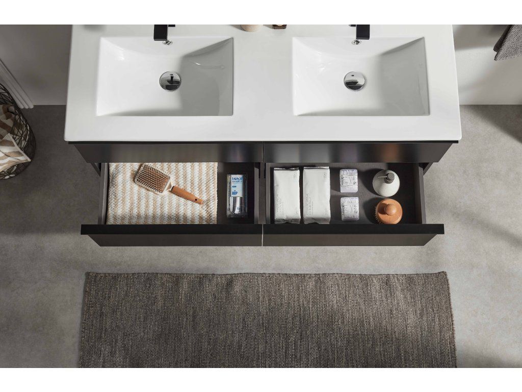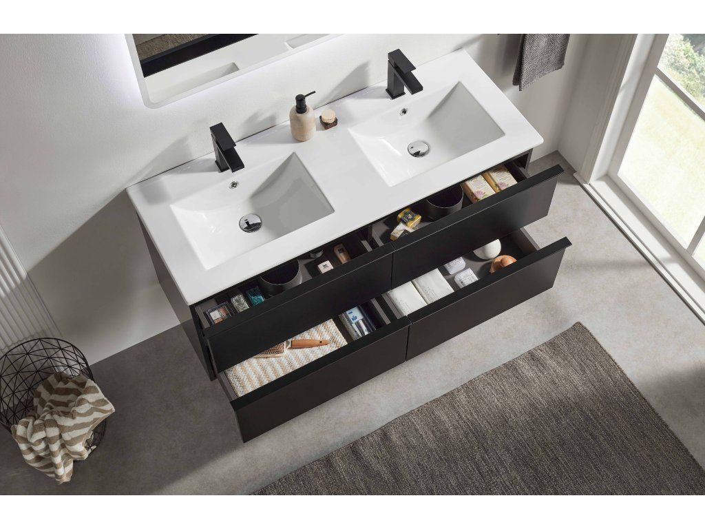 CERANO - Velora fürdőszobaszekrény - matt fekete, fekete fogantyú + Todo kerámia mosdó - 121x55x46,5 cm