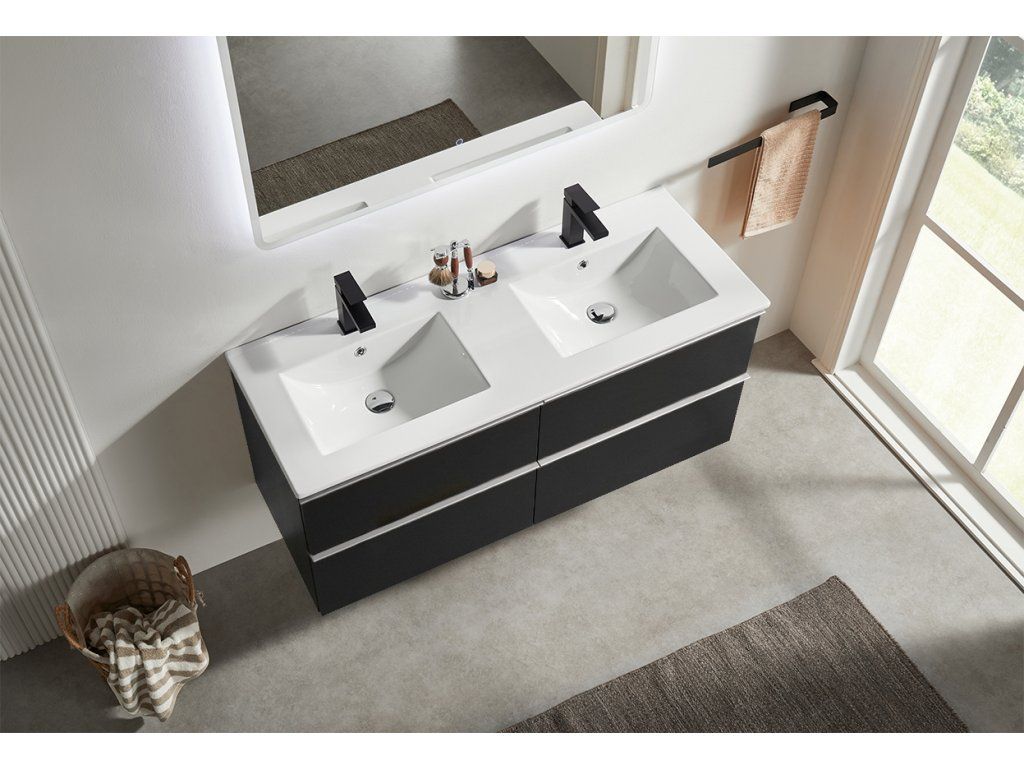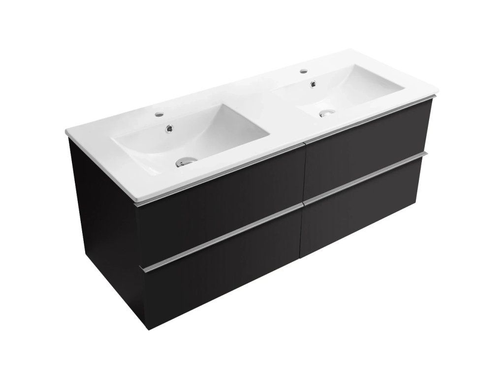 CERANO - Velora fürdőszobaszekrény - matt fekete, króm fogantyú + Todo kerámia mosdó - 121x55x46,5 cm
