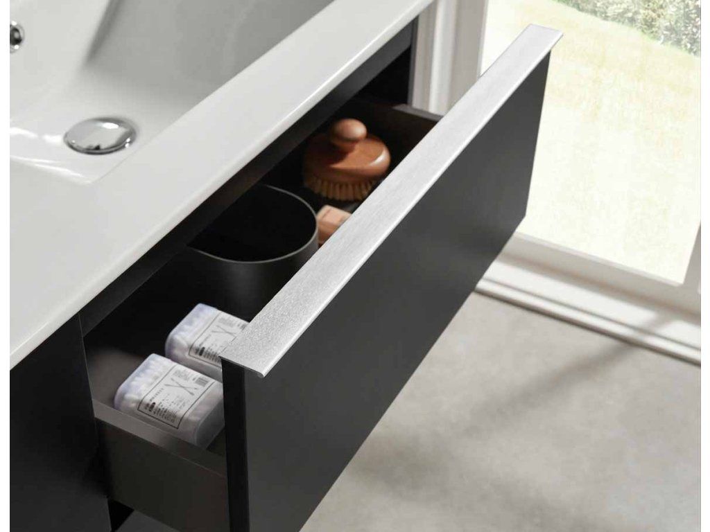 A szekrény falra szerelhető, és állítható szerelvényekkel van felszerelve, amelyek a szekrény testén a felső fríz alatt találhatók, lehetővé téve a magasság és a sík beállítását. A fiókban egy rejtett kivágás található a mosdó szifonjának beépítéséhez.
