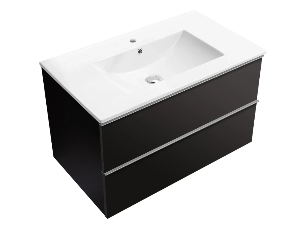 CERANO - Velora fürdőszobaszekrény - matt fekete, króm fogantyú + Todo kerámia mosdó - 81x55x46,5 cm
