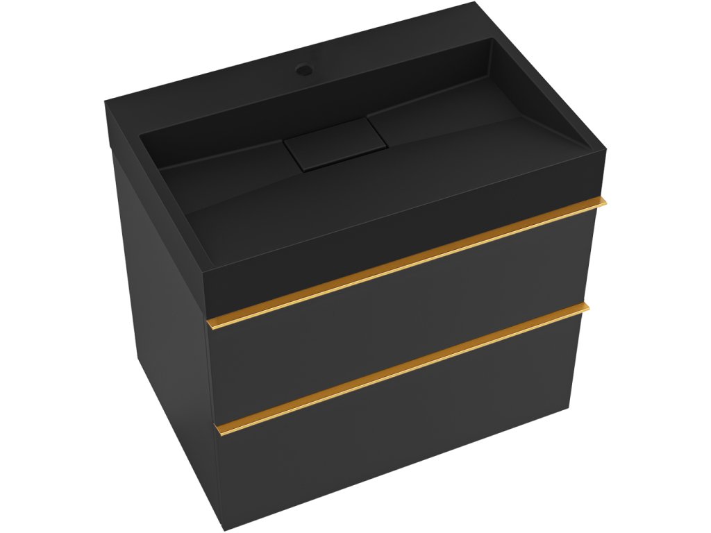 CERANO - Velora fürdőszobaszekrény - matt fekete - arany fogantyú + csaplyukkal ellátott mosdó öntött márványból Vita - fekete - 70x53x46 cm
