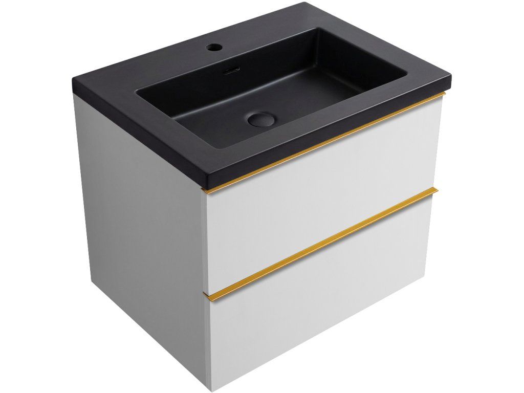 CERANO - Velora fürdőszobaszekrény - matt fekete - arany fogantyú + Ovo márvány mosdó - matt fehér - 59x53x46 cm