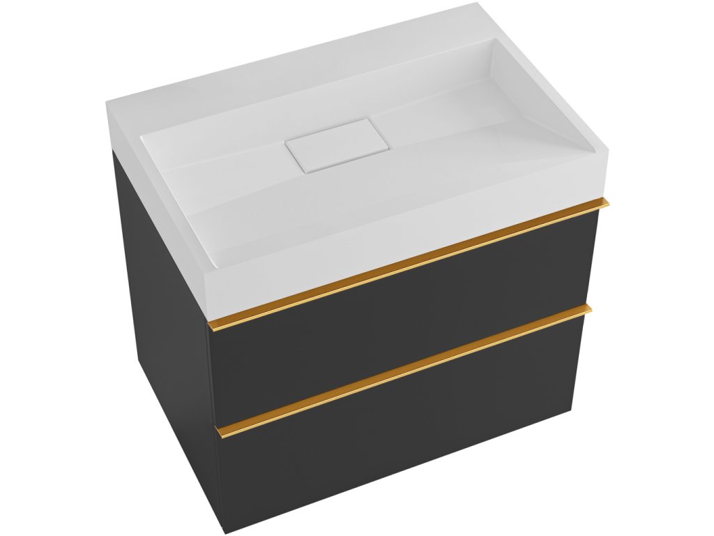 CERANO - Velora fürdőszobaszekrény - matt fekete - arany fogantyú + Vita öntött márvány mosdó - fényes fehér - 70x53x46 cm