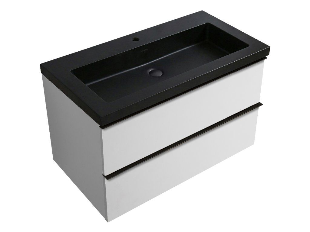 CERANO - Velora fürdőszobaszekrény - matt fekete - fekete fogantyú + Ovo megvilágított márvány mosdó - matt fehér - 79x53x46 cm