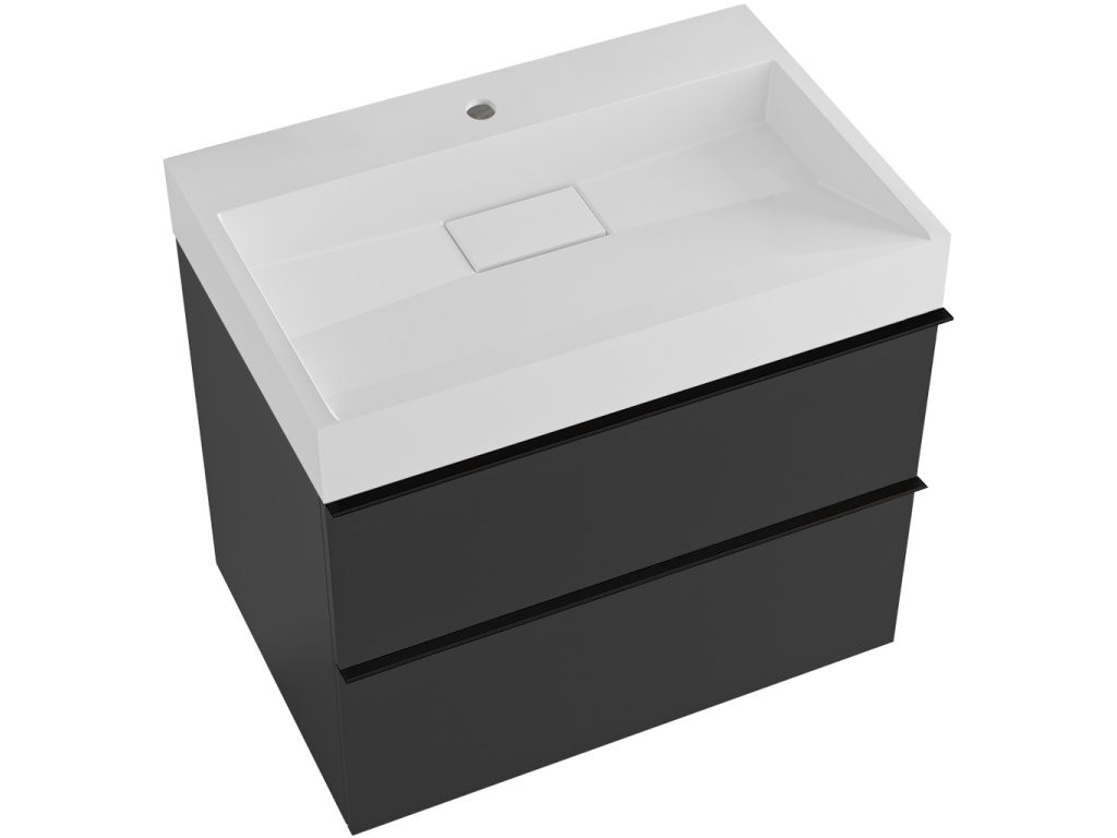 CERANO - Velora fürdőszobaszekrény - matt fekete - fekete fogantyú + Vita öntött márványból készült mosdó csaplyukkal - fényes fehér - 70x53x46 cm