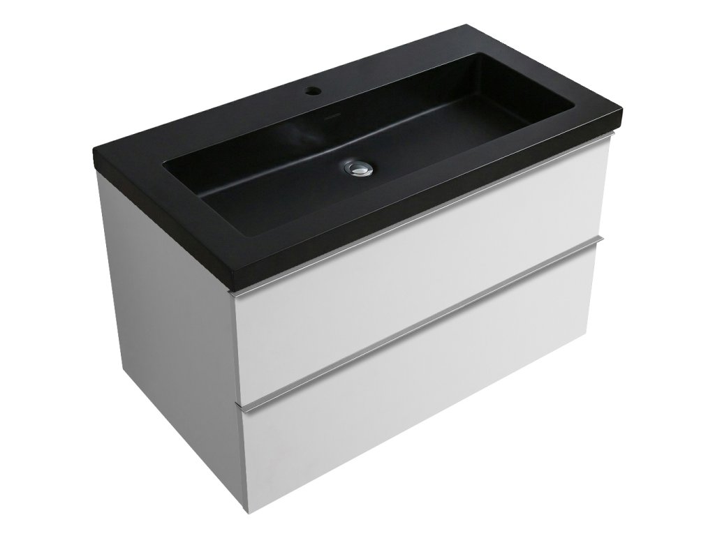 CERANO - Velora fürdőszobaszekrény - matt fekete - króm fogantyú + márvány mosdó - matt fehér - 99x53x46 cm