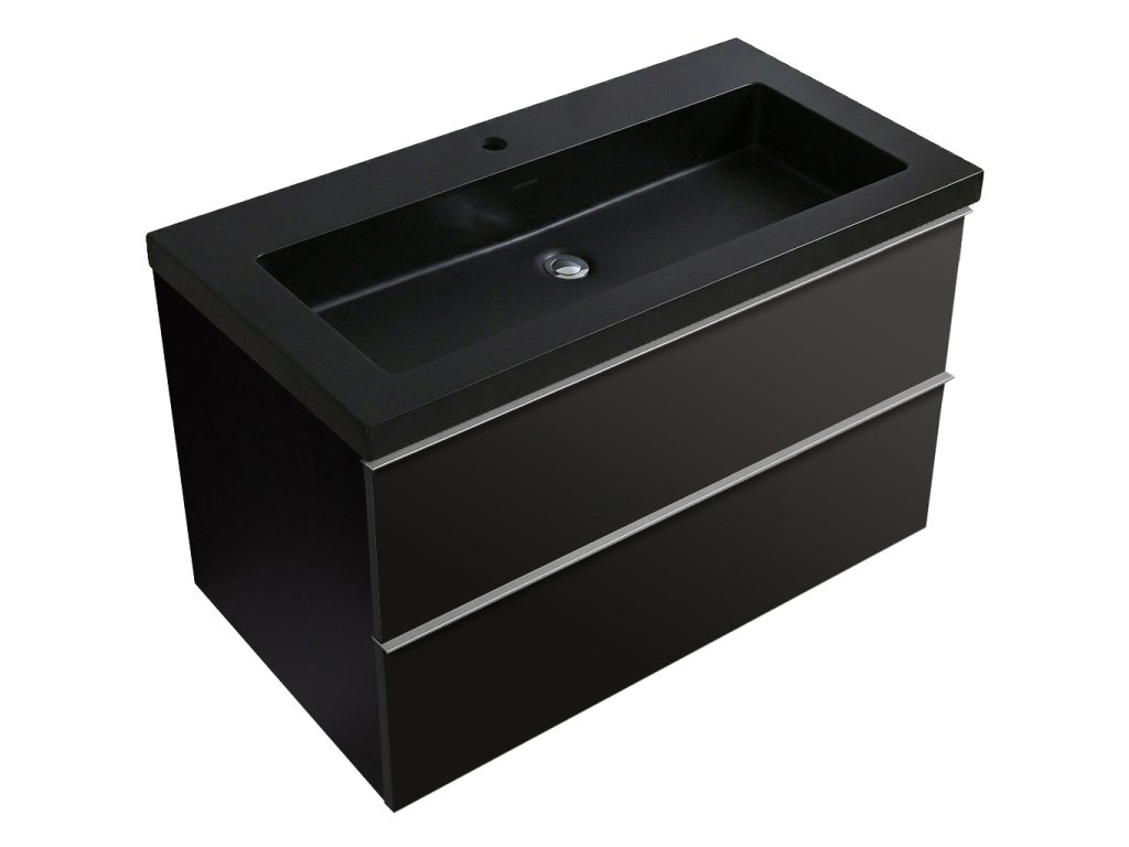 CERANO - Velora fürdőszobaszekrény - matt fekete - króm fogantyú + márvány mosdó - matt fekete - 79x53x46 cm