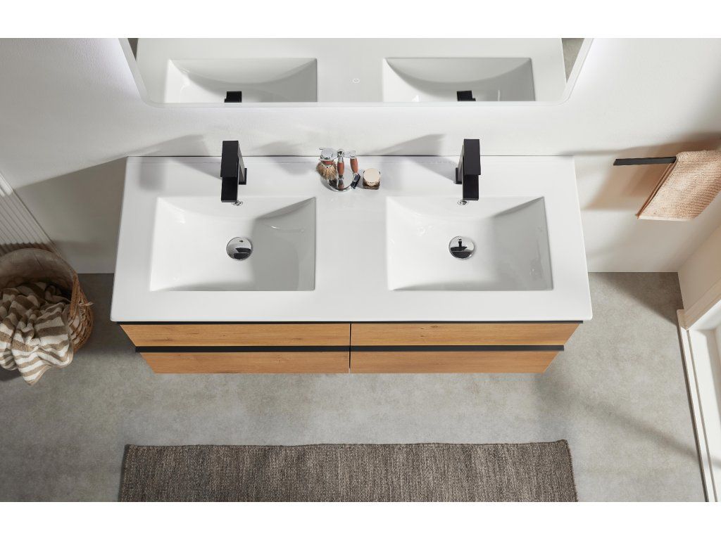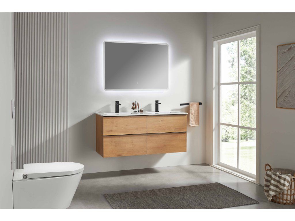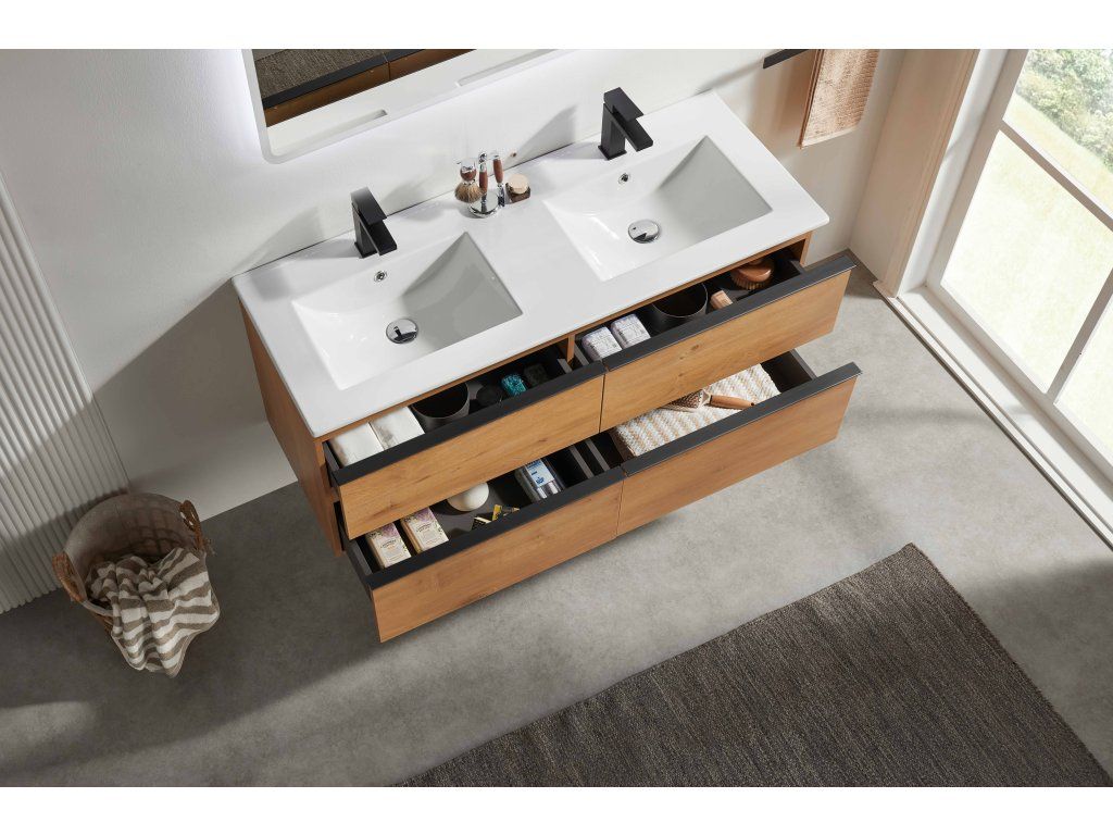CERANO - Velora fürdőszobaszekrény - mézes tölgyfa, fekete fogantyú + Todo kerámia mosogató - 121x55x46,5 cm