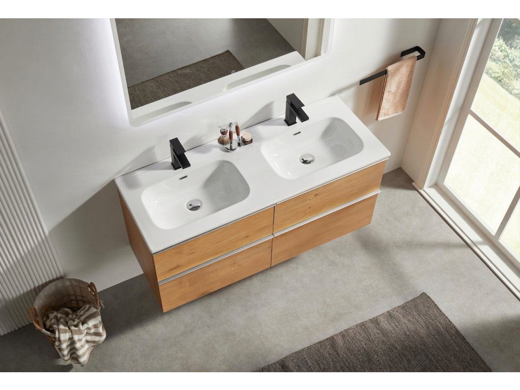 CERANO - Velora fürdőszobaszekrény - mézes tölgyfa, króm fogantyú + Novo kerámia mosdó - fényes fehér - 121x54,5x46,5 cm
