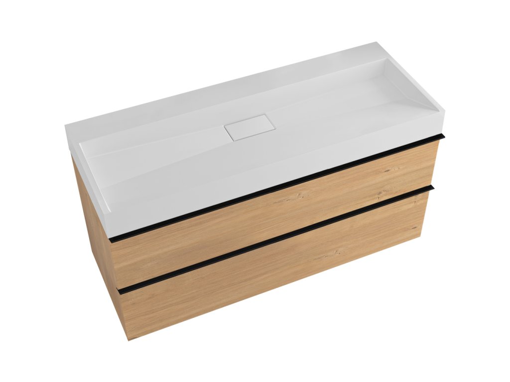 CERANO - Velora fürdőszobaszekrény - mézes tölgyfa - fekete fogantyú + Vita öntött márvány mosdó - matt fehér - 100x53x46 cm