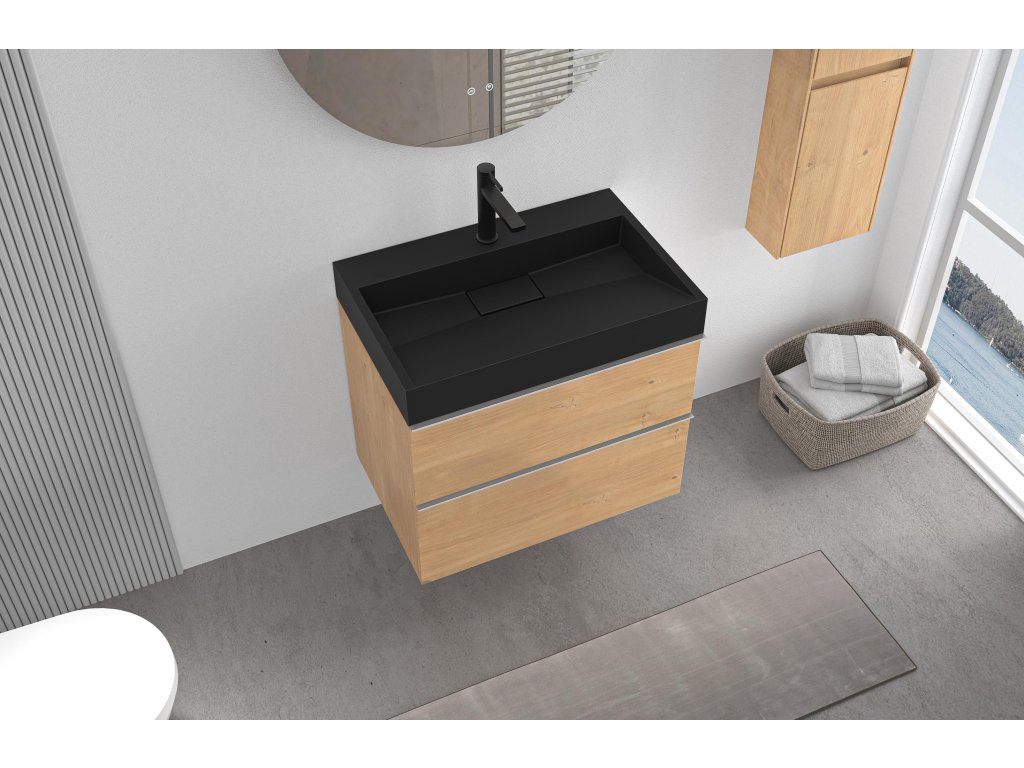 CERANO - Velora fürdőszobaszekrény - mézes tölgyfa - króm fogantyú + Vita öntött márvány csaptelepnek való lyukkal ellátott mosdó - fekete - 70x53x46 cm