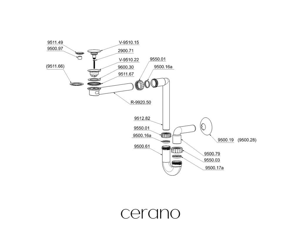 CERANO - Mosdóhoz/bútorhoz való szifon, helytakarékos/extra alacsony - műanyag - klikk-klakk univerzális rozsdamentes acél lefolyó - DN32/250-700 mm - fehér