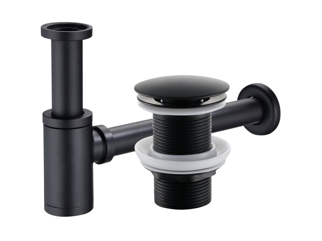 CERANO - Mosdószifon - 5/4" - sárgaréz - DN32 mm - klikk-klakk kifolyóval, túlfolyó nélkül - matt fekete