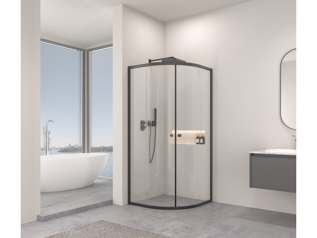 CERANO - Zuhanykabin Orso B/J - 5 mm - negyedkör alakú - R550 - fekete, átlátszó üveg - 90x90x195 cm - tolóajtó