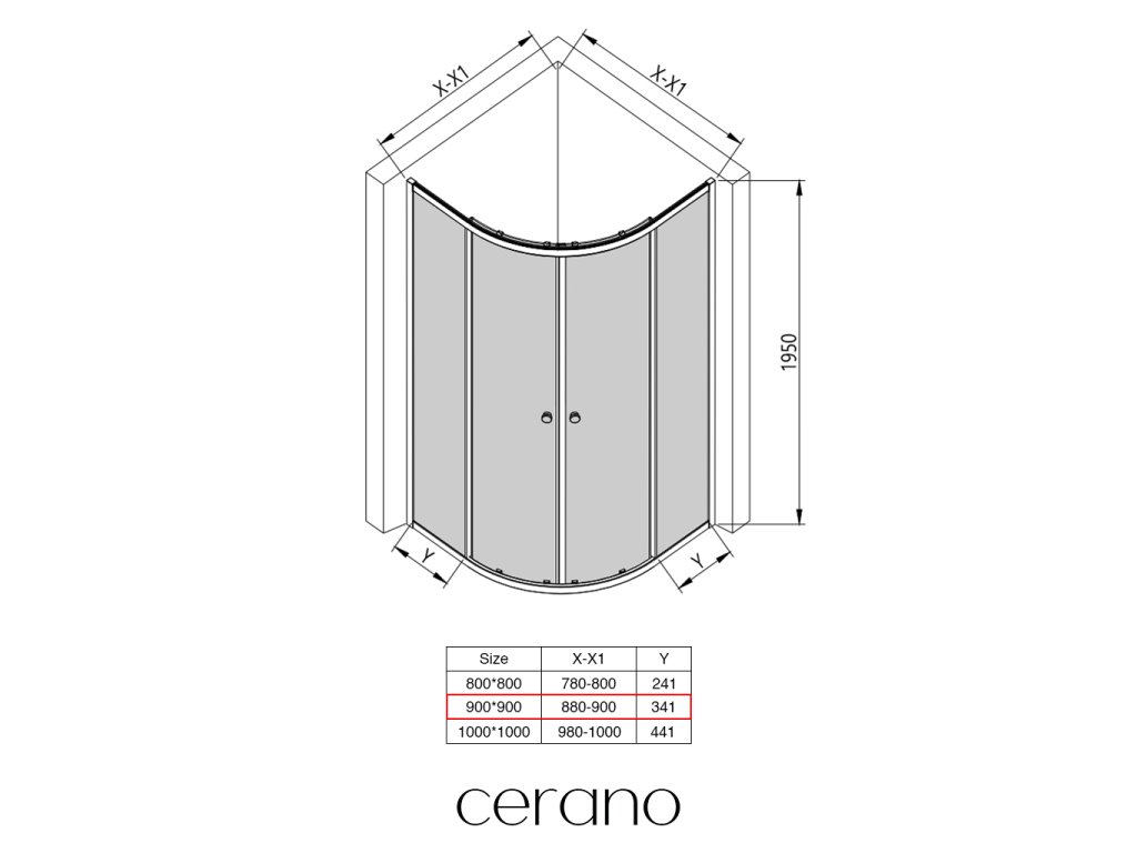 Ebben a sorozatban három bevált méretet kínálunk, amelyek megfelelnek a modern fürdőszoba-elrendezések leggyakoribb követelményeinek. Ez a sarok zuhanykabin a CERANO félkör alakú, azonos méretű zuhanytálcáival való tökéletes összehangolásra lett tervezve, ami megkönnyíti a beszerelést és egységes, harmonikus megjelenést kölcsönöz. Ugyanakkor a magas szintű kompatibilitás kiküszöböli a bonyolult beállítások vagy adaptációk szükségességét. A rugalmas rögzítésnek köszönhetően könnyen felszerelhető akár egy hozzá illő zuhanytálcára, akár közvetlenül egy előkészített, vízelvezető rendszerrel ellátott padlóra - az Ön építési lehetőségeitől és esztétikai preferenciáitól függően.