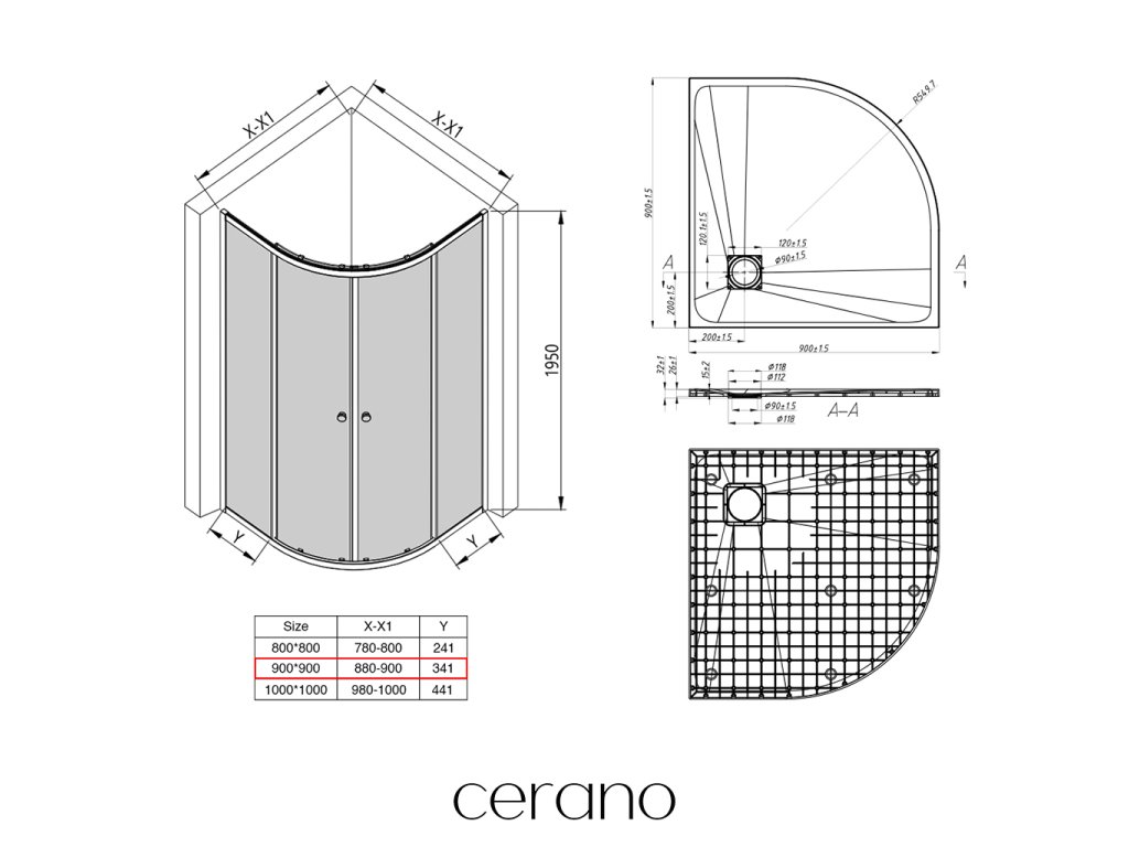 Ebben a sorozatban három bevált méretet kínálunk, amelyek megfelelnek a modern fürdőszoba-elrendezések leggyakoribb követelményeinek. Ez a sarok zuhanykabin a CERANO félkör alakú, azonos méretű zuhanytálcáival való tökéletes összehangolásra lett tervezve, ami megkönnyíti a beszerelést és egységes, harmonikus megjelenést kölcsönöz. Ugyanakkor a magas szintű kompatibilitás kiküszöböli a bonyolult beállítások vagy adaptációk szükségességét. A rugalmas rögzítésnek köszönhetően könnyen felszerelhető akár egy hozzá illő zuhanytálcára, akár közvetlenül egy előkészített, vízelvezető rendszerrel ellátott padlóra - az Ön építési lehetőségeitől és esztétikai preferenciáitól függően.