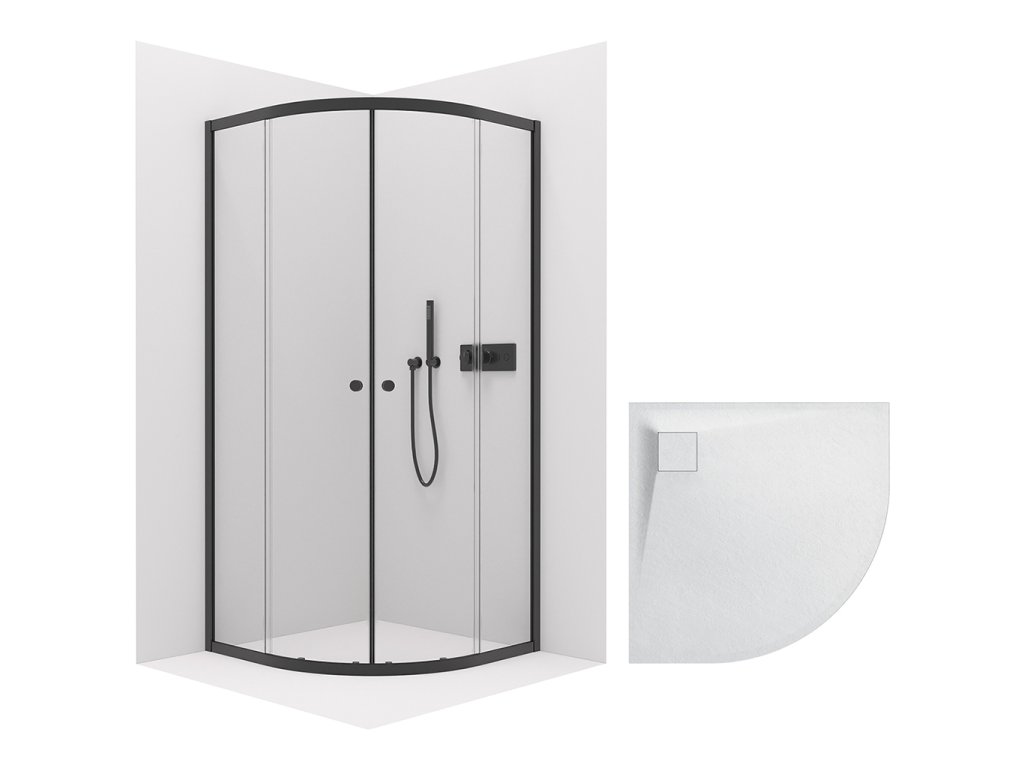 CERANO - Zuhanykabin Orso B/J 5 mm - R550 - matt fekete + CERANO - Zuhanytálca Quarto - R550 - strukturált matt fehér - 90x90 cm