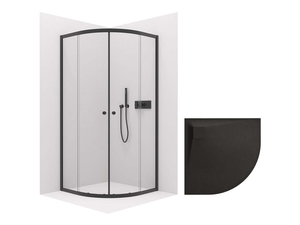 CERANO - Zuhanykabin Orso B/J 6 mm - R550 - matt fekete + CERANO - Zuhanytálca Quarto - R550 - strukturált matt fekete - 90x90 cm