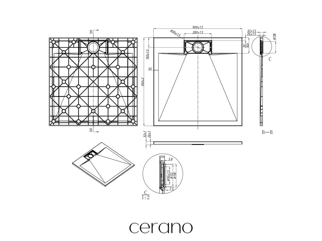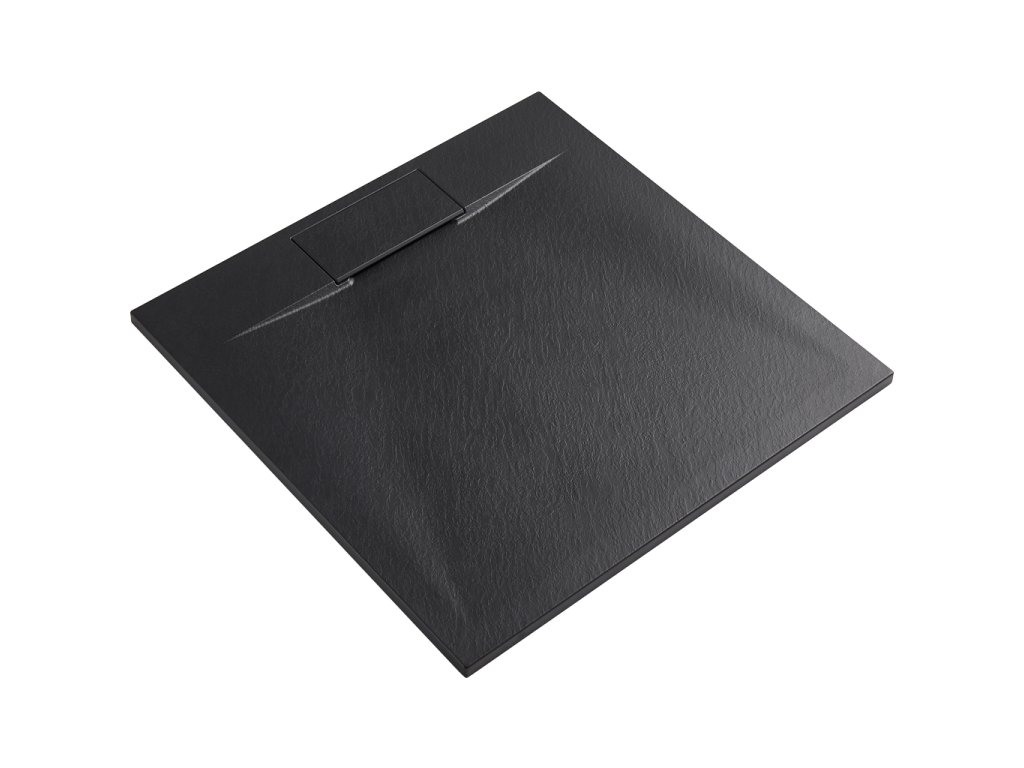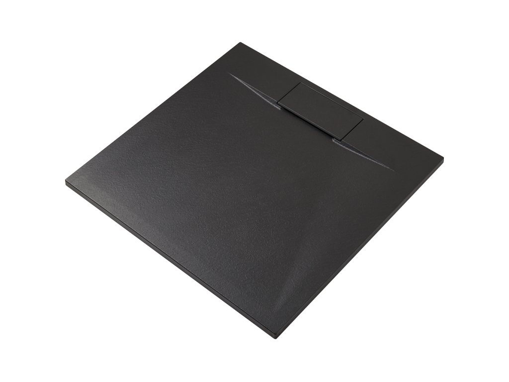 CERANO - Enzo négyzet alakú zuhanytálca - SMC/ásványi kompozit - strukturált matt fekete - 90x90x3 cm