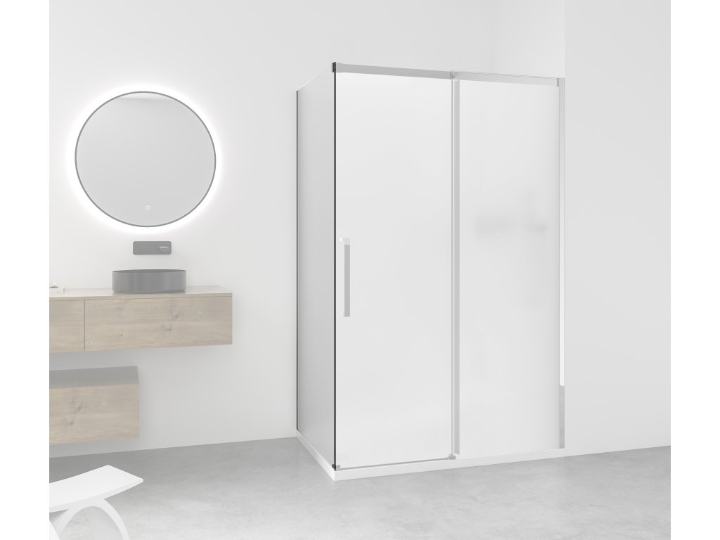 CERANO - Lantono oldalfal - jobbos - 8 mm - króm, matt üveg - 90x195 cm - egy darabból álló fix