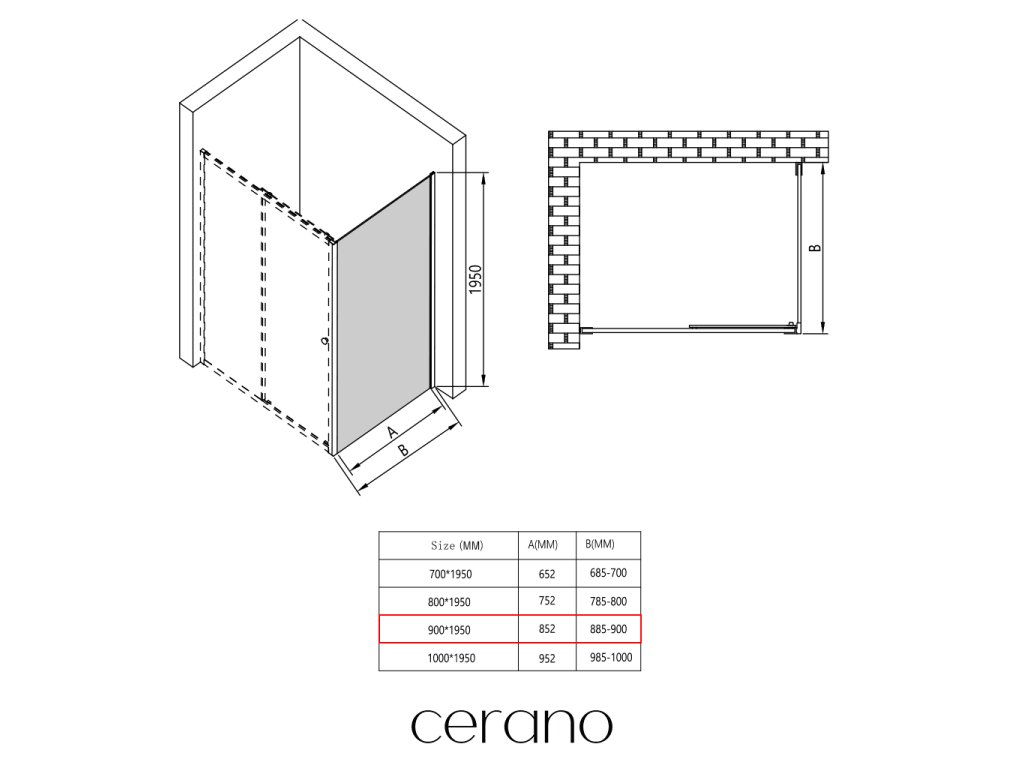 CERANO - Varone oldalfal B/J - 6 mm - króm, átlátszó üveg - 90x195 cm