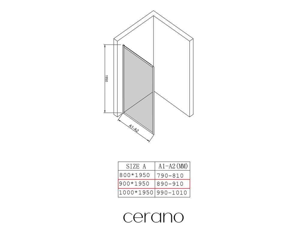 CERANO - Versaro B/J oldalfal - 6 mm - matt fekete, átlátszó üveg - 90x195 cm - egy darabból álló fix
