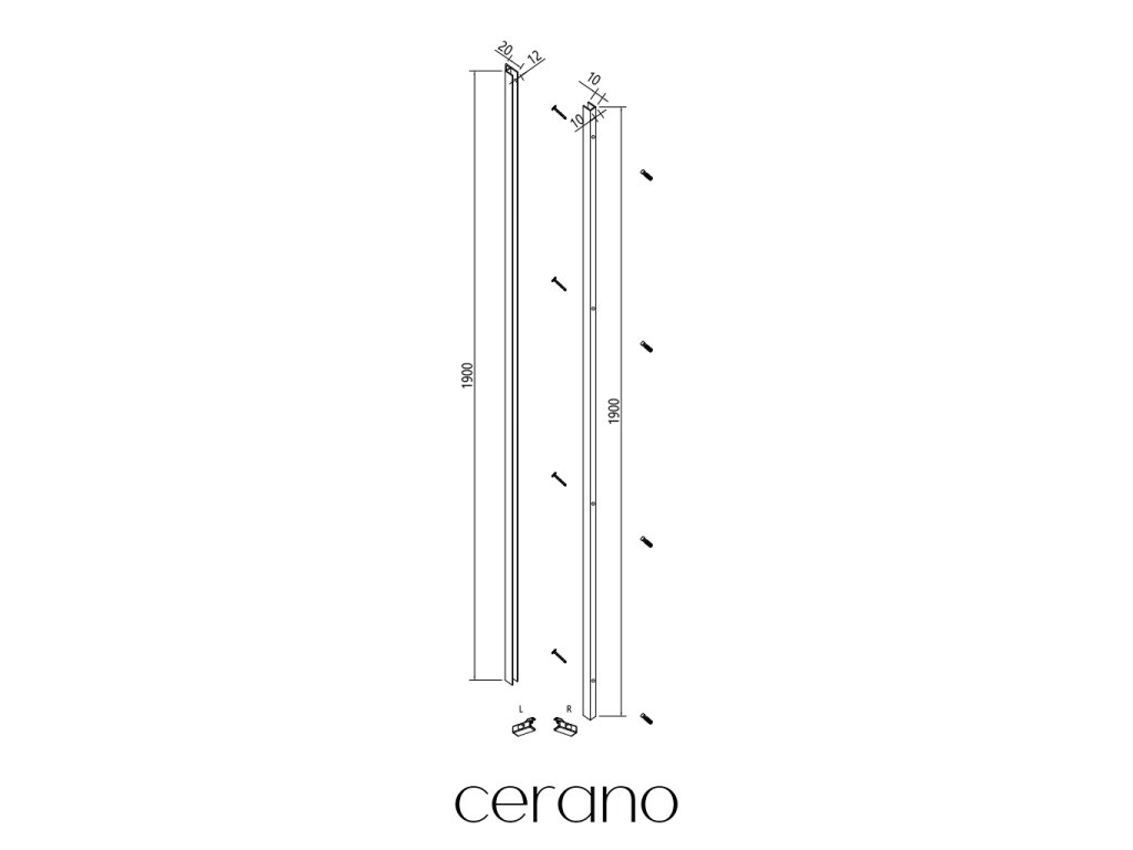 CERANO - Falprofil fülkébe való beépítéshez ajtókhoz és paravánokhoz Antelo B/J - matt fekete - 10 mm