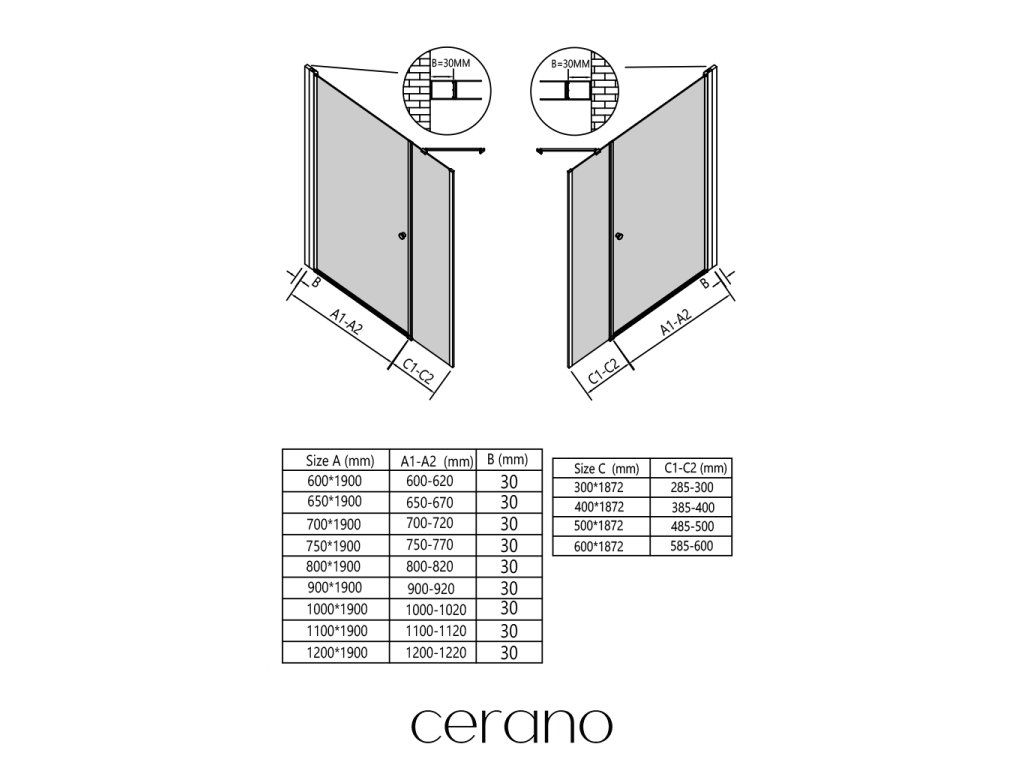 CERANO - Zuhanyajtó toldóprofil Antelo B/J - fekete - 30 mm
