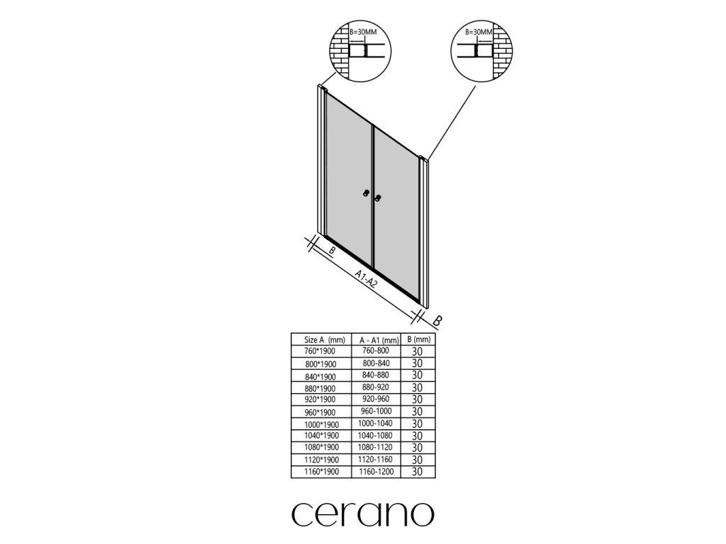 Ez a Cerano toldóprofil úgy lett kialakítva, hogy az Antelo zuhanyajtók könnyen illeszkedjenek a szélesebb épületnyílásokhoz .