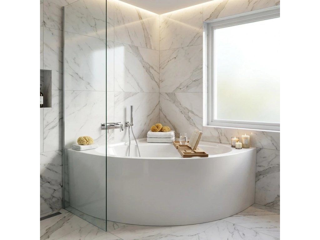 CERANO - Sarok akril kád Cora - fényes fehér - 135x135 cm