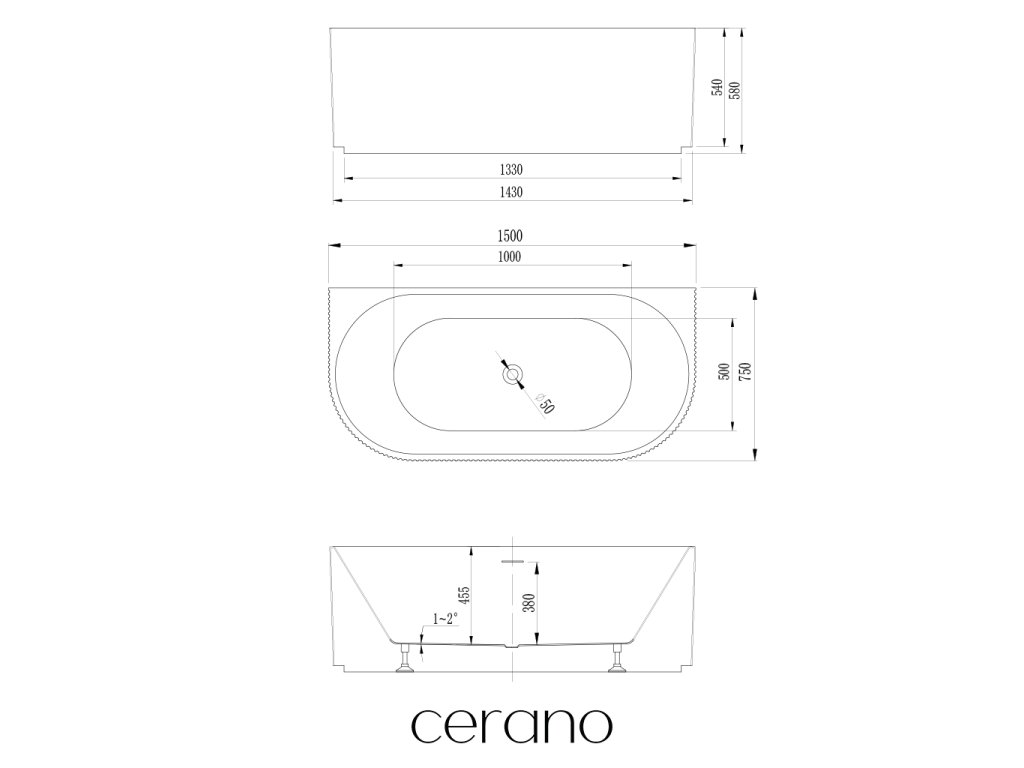 CERANO - Szabadon álló akril kád Aira - fényes fehér - 150x75 cm