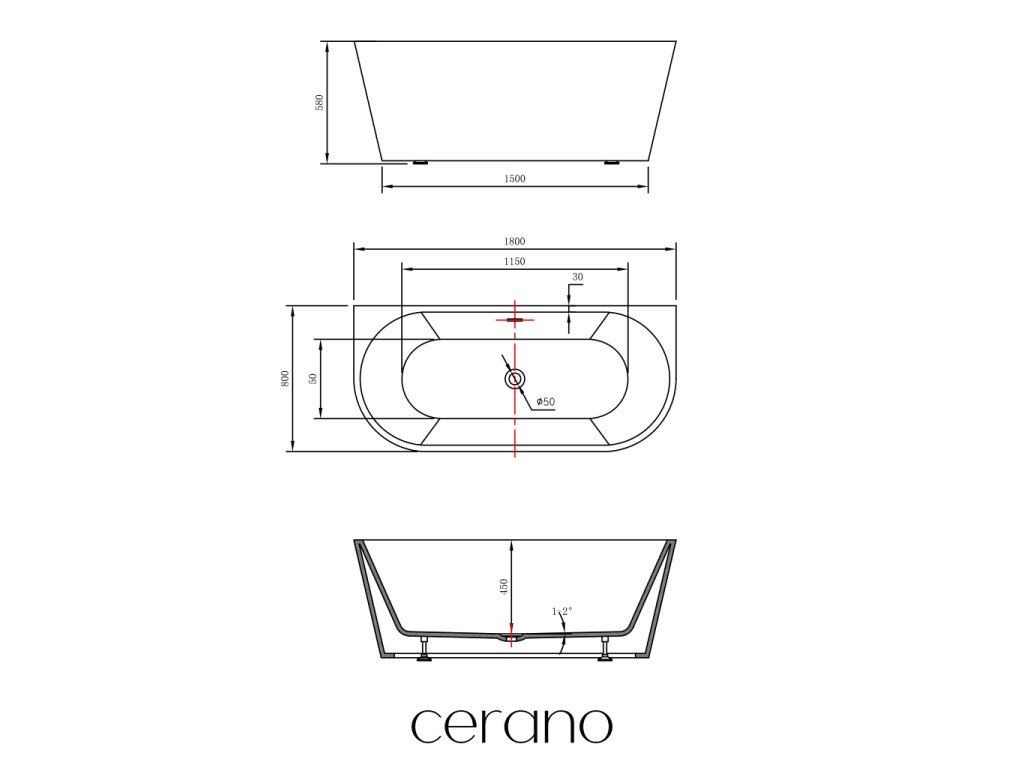 CERANO - Szabadon álló akril kád Aira - fényes fehér - 180x80 cm