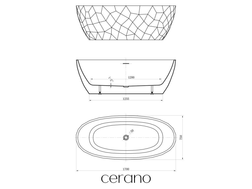 CERANO - Szabadon álló akril kád Malia - fényes fehér - 170x75 cm